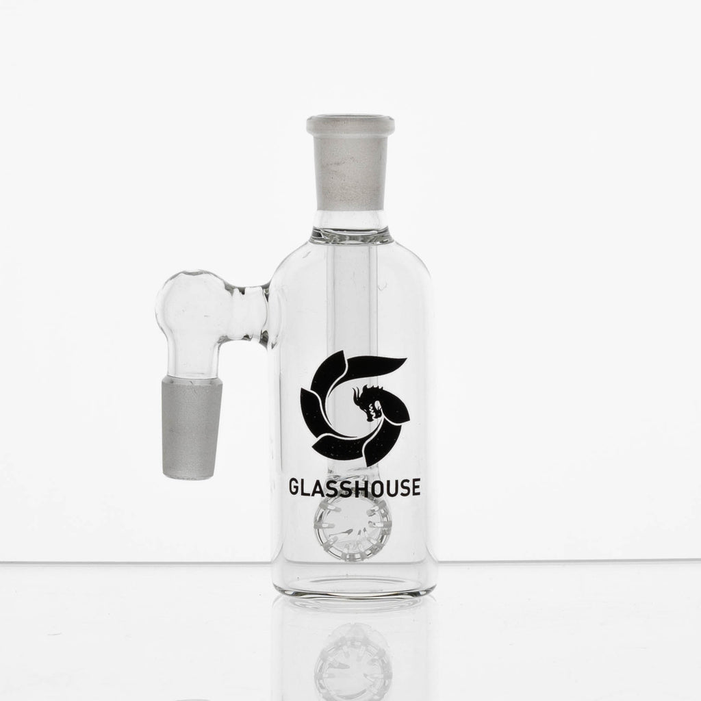 The Glass house Ash Catcher attaches to your glass water pipe to keep resin and ash from ending up in your bong water. It traps the ash and other byproducts of burning flower. With these byproducts trapped, it won't make it into the bong water. Essentially it acts as an extra filter to provide you with a cleaner and smoother bong rip!